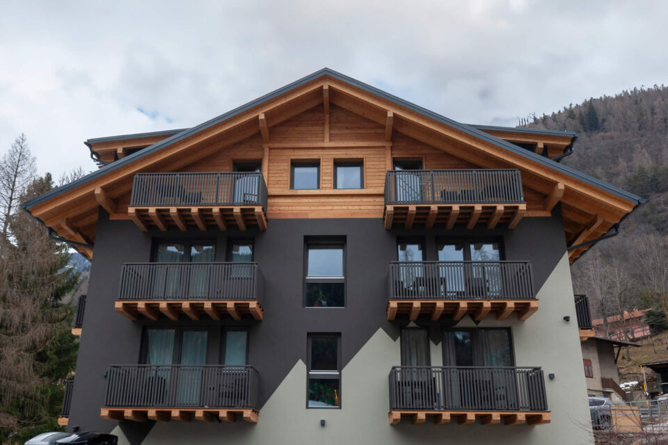 Il consorziato Apox in collaborazione con Carpenteria Pohl ha realizzato tutta la struttura metallica rivestita in larice.