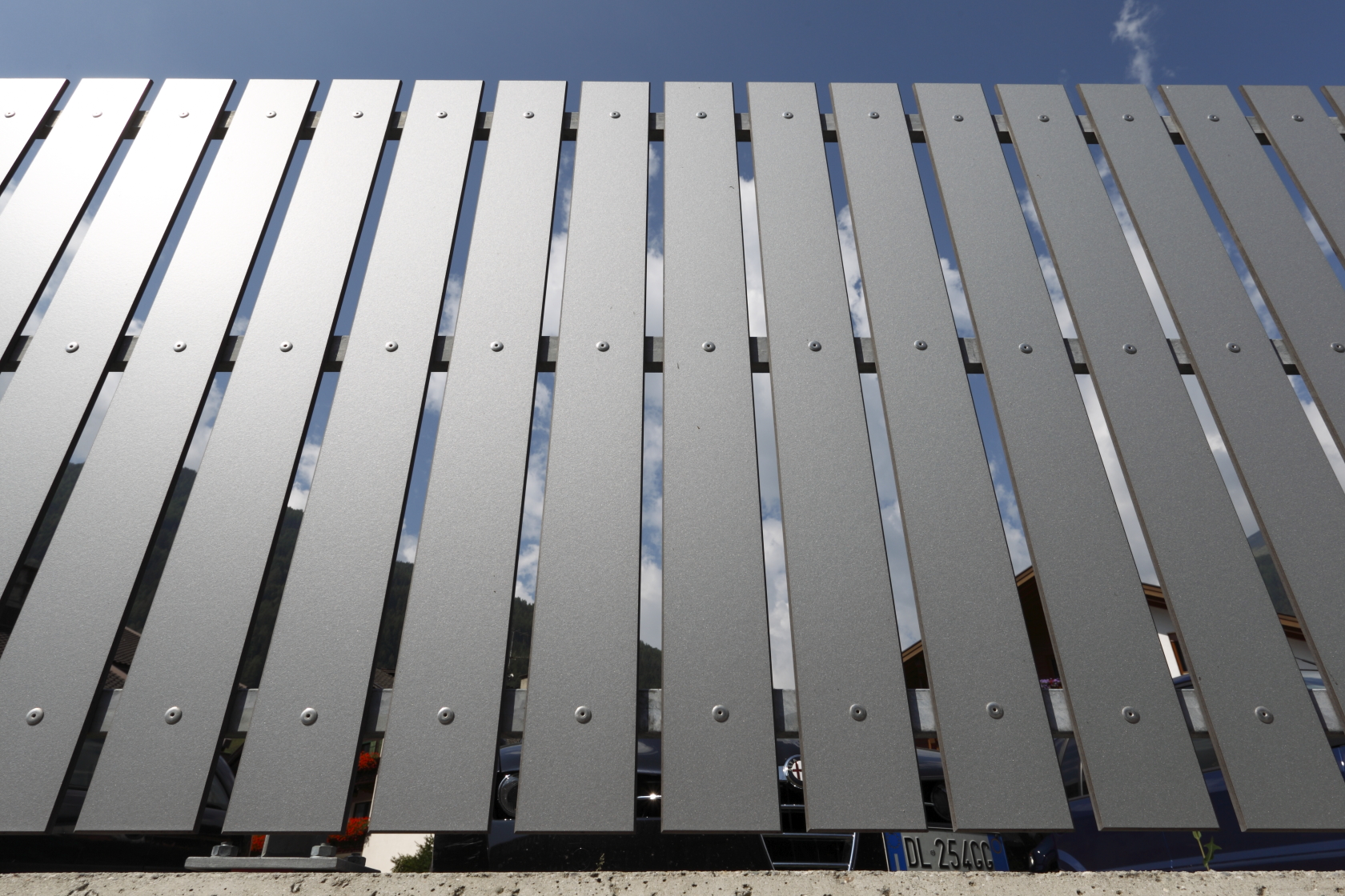 Staccionata a doghe verticali in hpl.